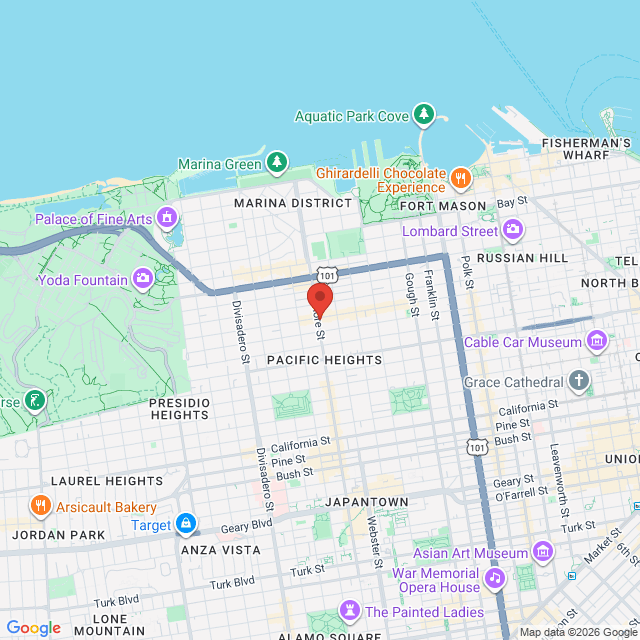 Located in Cow Hollow, at the corner of Fillmore St & Union St. Residential and metered street parking is available. Please allow yourself 10 minutes to arrive and park.